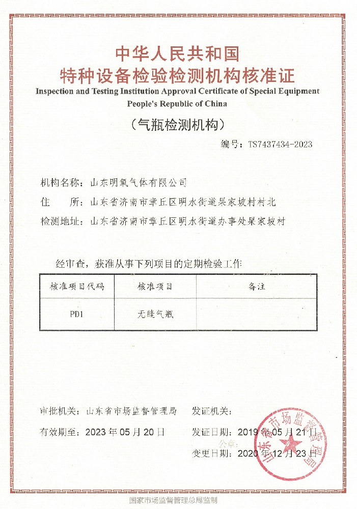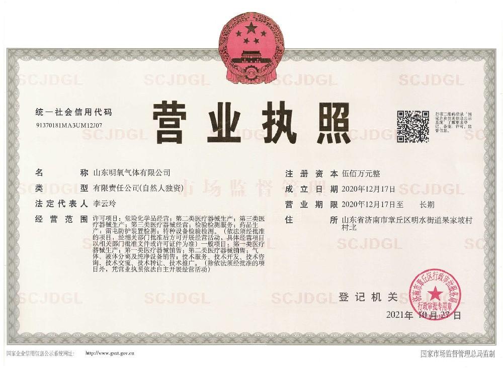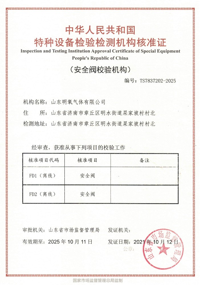 ??? 山東明氧氣體有限公司的前身為始建于1993年的章丘市明水氧氣廠,2020年12月企業(yè)由民營獨(dú)資轉(zhuǎn)型升級為山東明氧氣體有限公司,企業(yè)進(jìn)入新的發(fā)展階段。公司位于山東省濟(jì)南市章丘區(qū)明水街道杲家坡村村北,占地面積4000平方米,注冊資金500萬元,固定資產(chǎn)投資3000萬元,主要經(jīng)營項目為醫(yī)用氧氣、工業(yè)氧氣、氮?dú)狻⒏呒兊獨(dú)狻鍤狻⒏呒儦鍤狻⒏呒兒狻⒍趸肌⒒旌蠚怏w等各種工業(yè)氣體、高純氣體、混合氣體的充裝銷售、各類氣瓶的銷售、安全閥校驗(yàn)、鋼質(zhì)無縫氣瓶的檢驗(yàn)等。